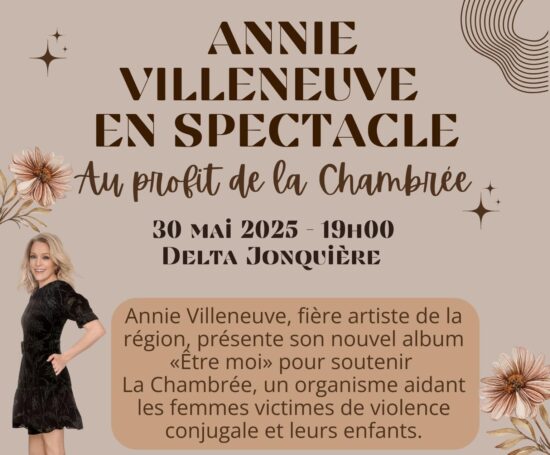 Vendredi le 30 mai 25 à 19h, spectacle bénéfice: Annie Villeneuve